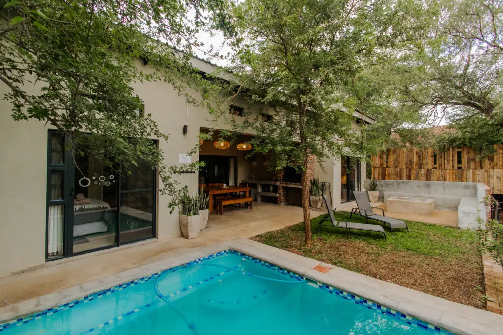 A warm and welcoming space for families or groups wanting an immersive wildlife stay. Complete with a private pool, outdoor braai, and a stunning outdoor shower.